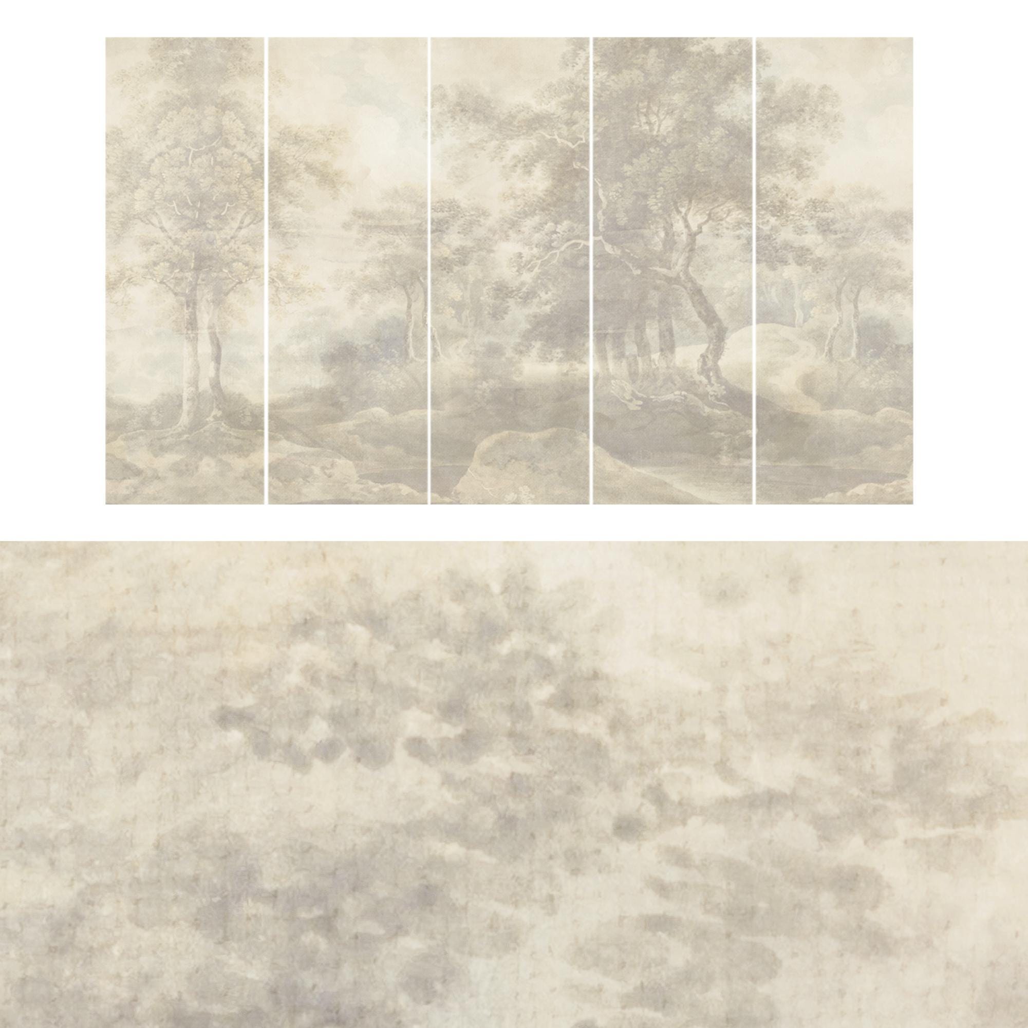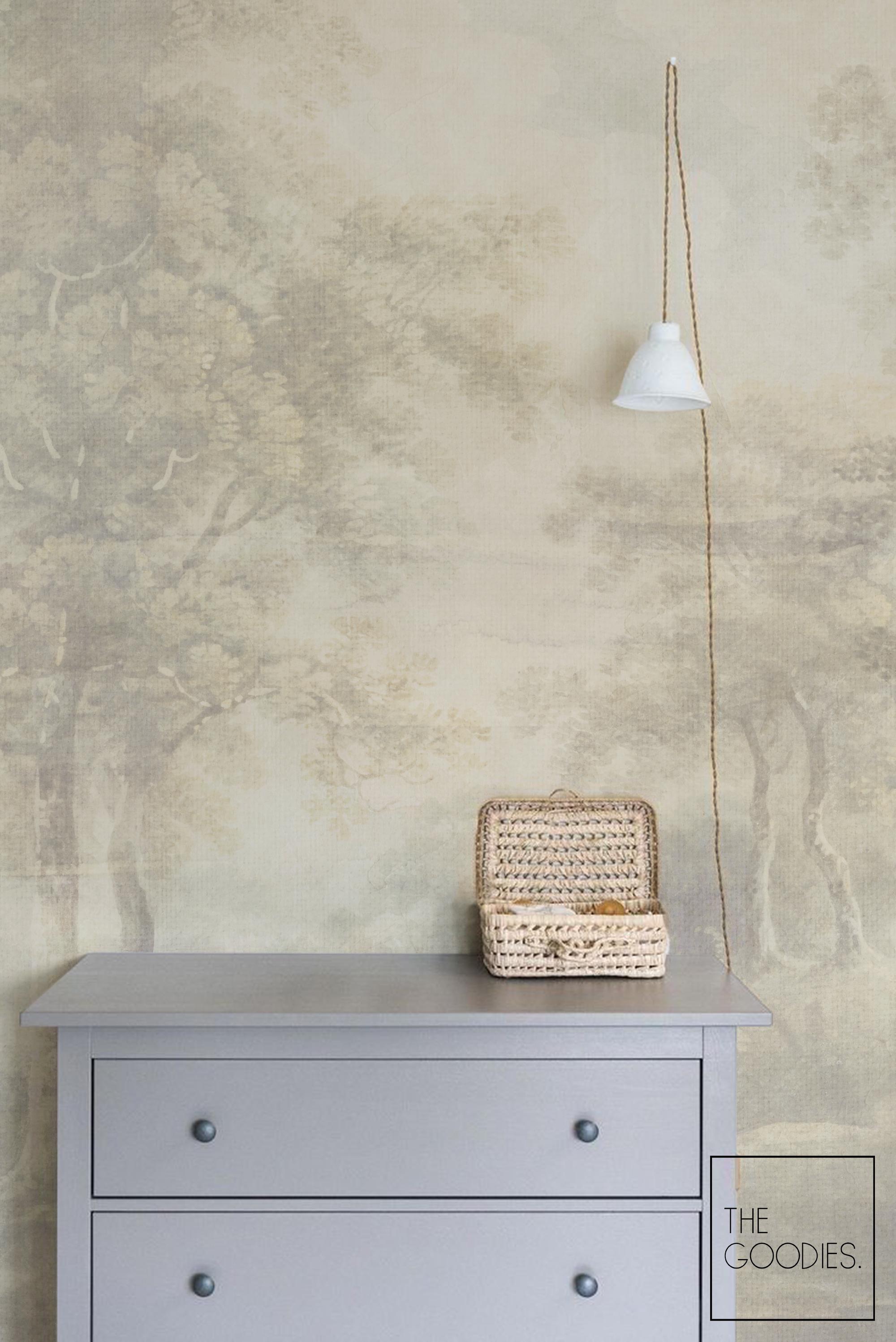 Ethereal Vintage Landscape Mural – Faded Forest Wall Art, Antique Pastel Woodland Wallpaper #301