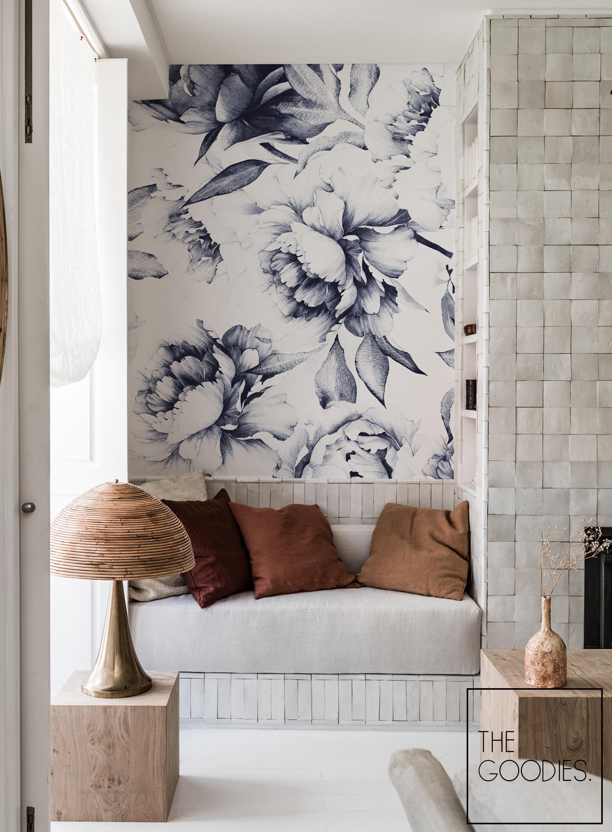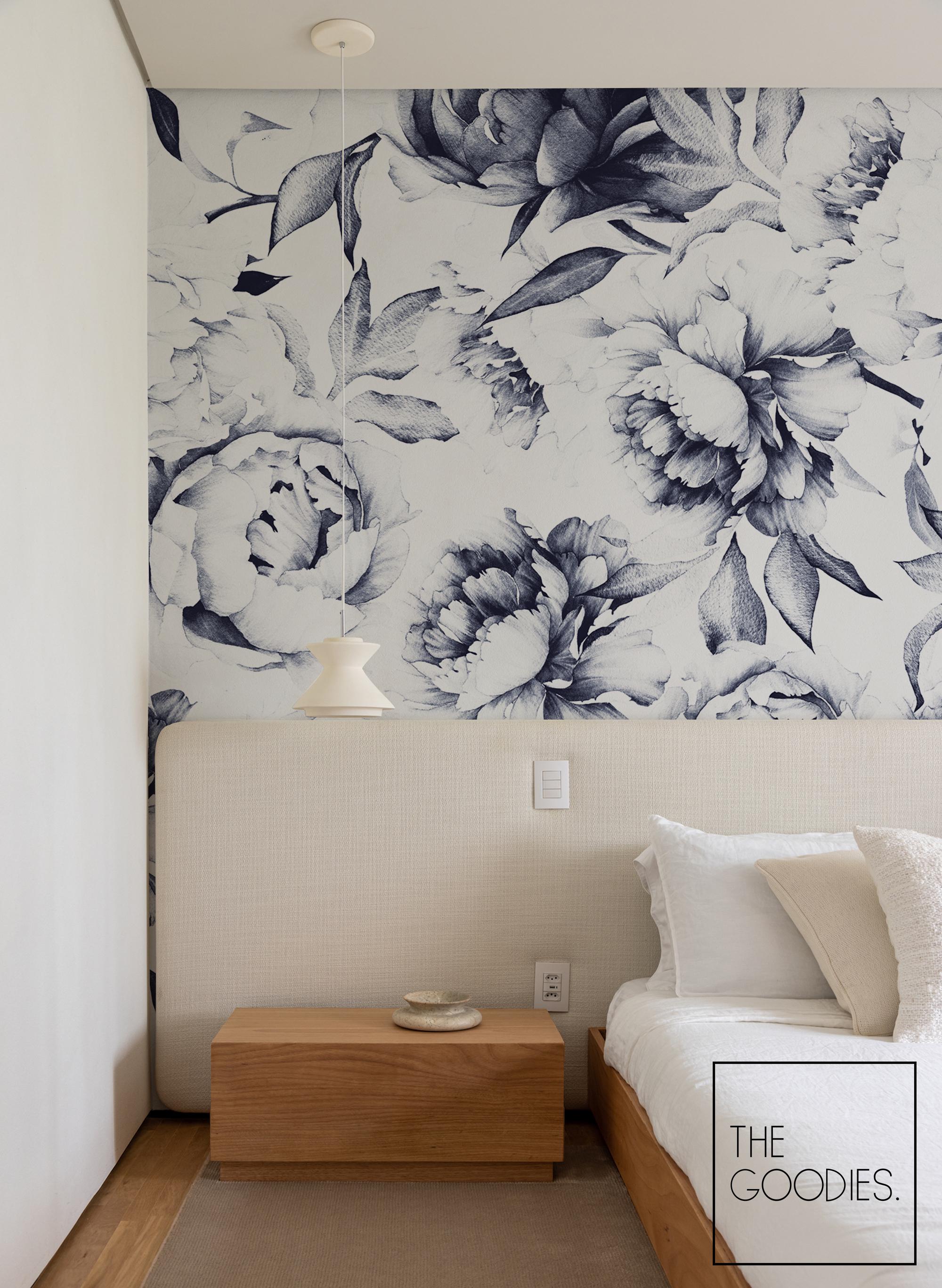 This elegant floral wallpaper features hand-painted peony blooms in a timeless navy and white color palette. The soft watercolor texture adds depth and sophistication while maintaining a clean, airy feel. Perfect for modern, classic, or Scandinavian interiors, it brings a calm and refined atmosphere to any space. Ideal for living rooms, bedrooms, offices, or accent walls.