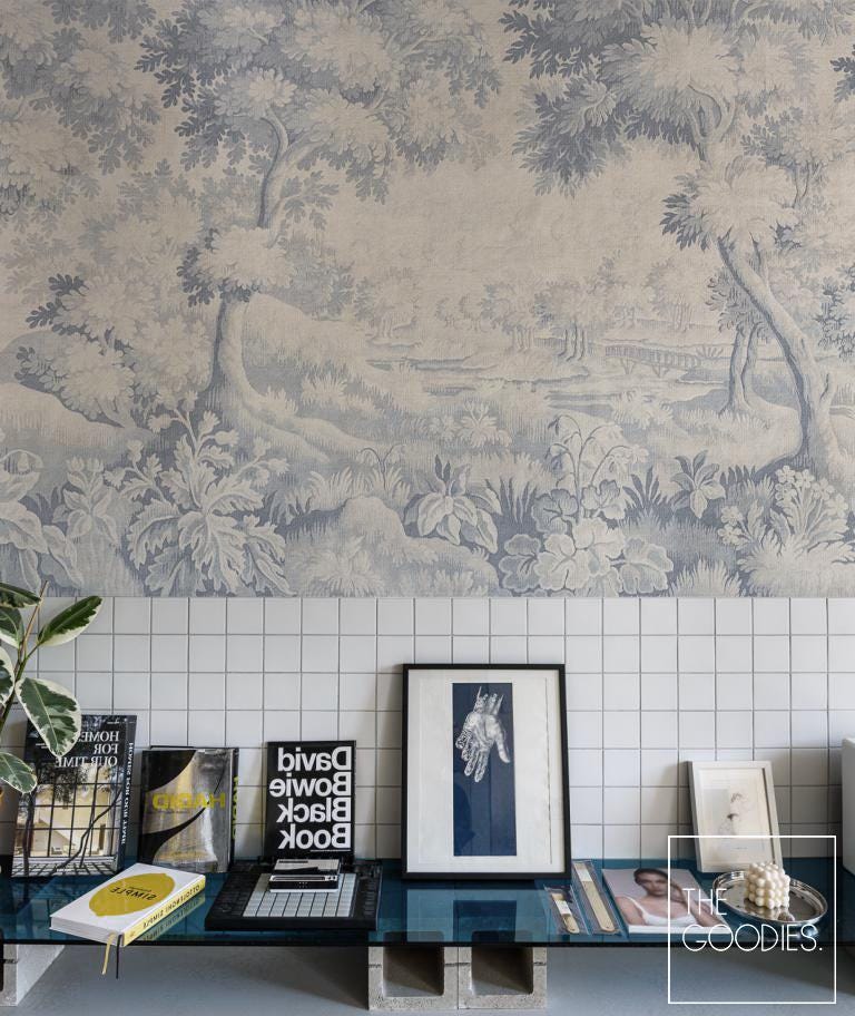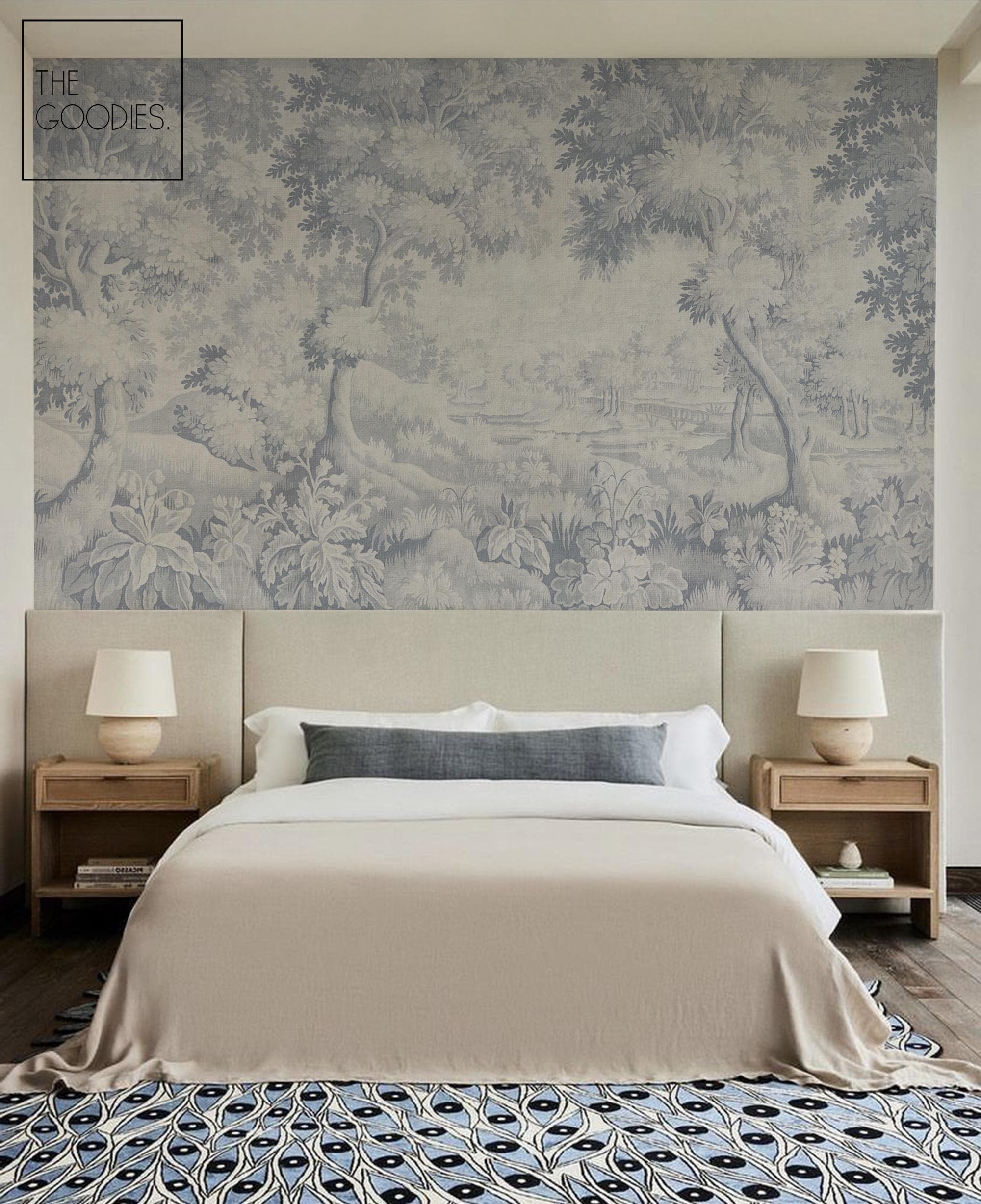 Blue Landscape Wallpaper, Serene Trees, French Antique Decor, Woodland Scene Wallpaper Feature Wall #304P
