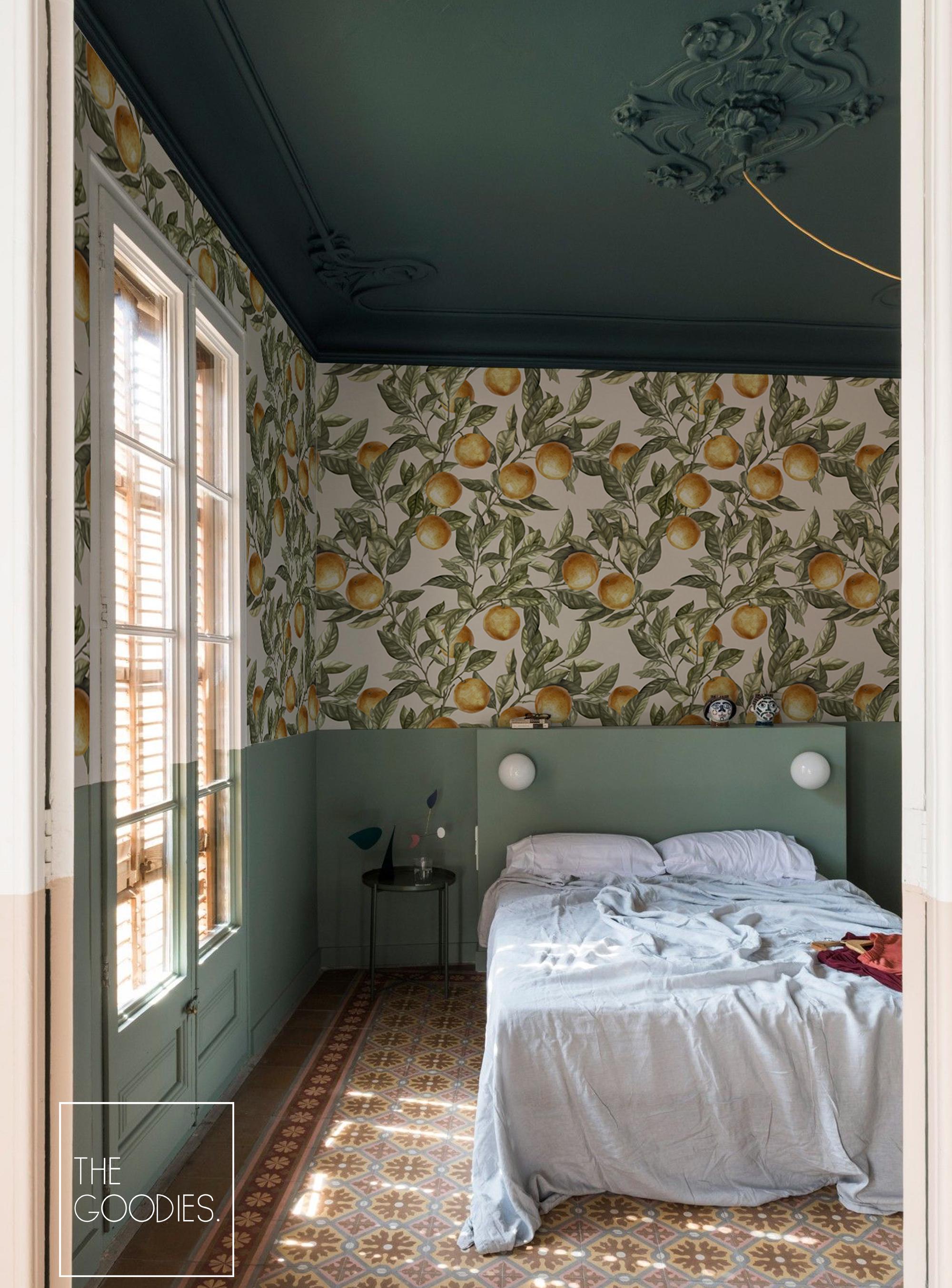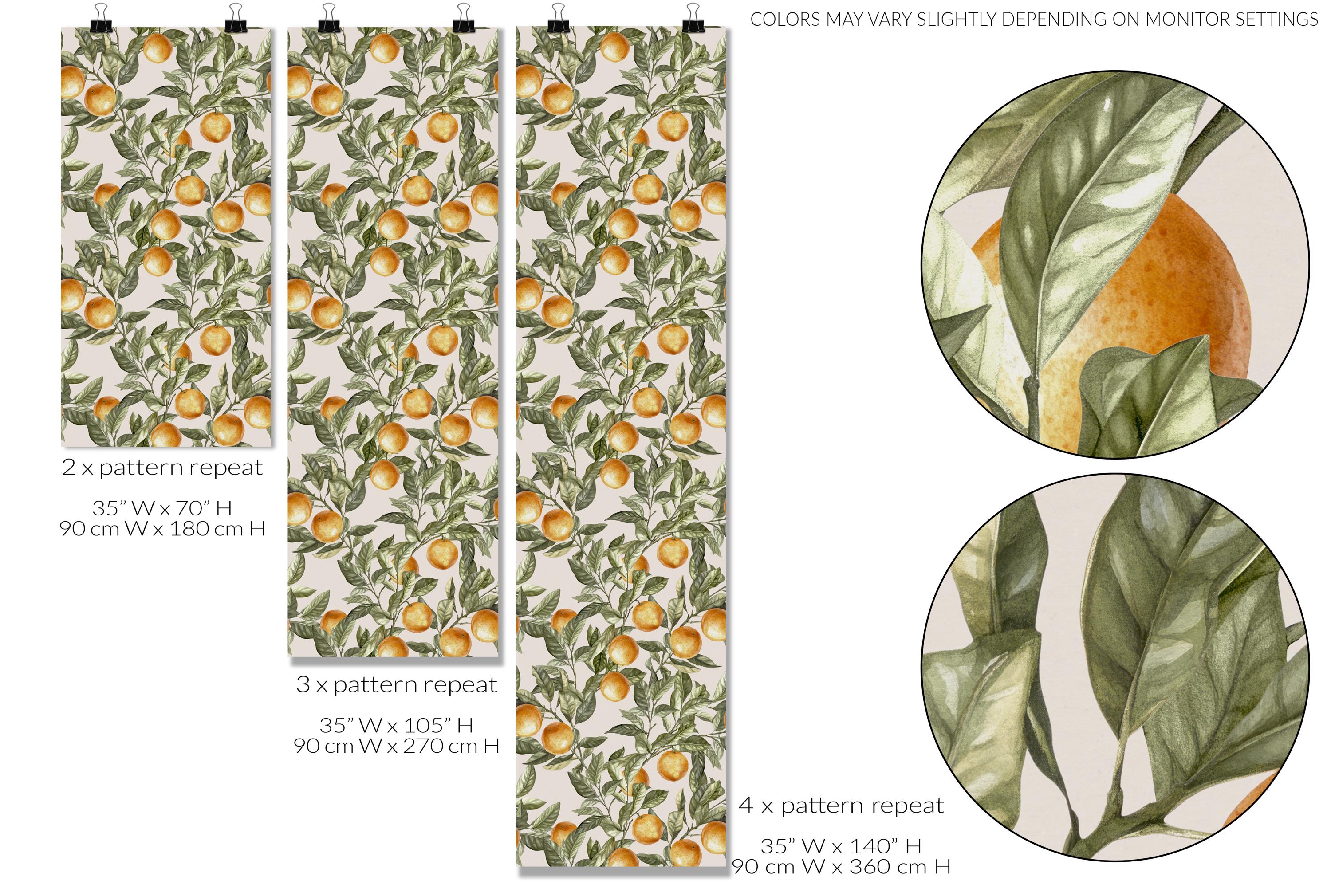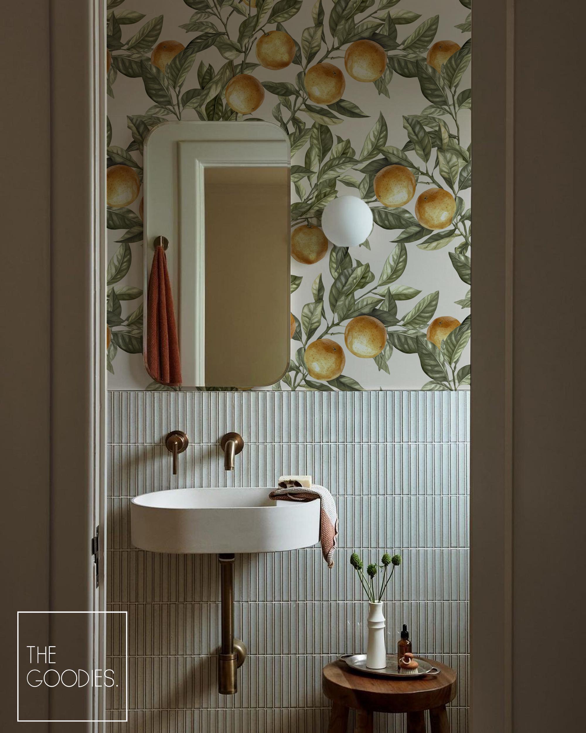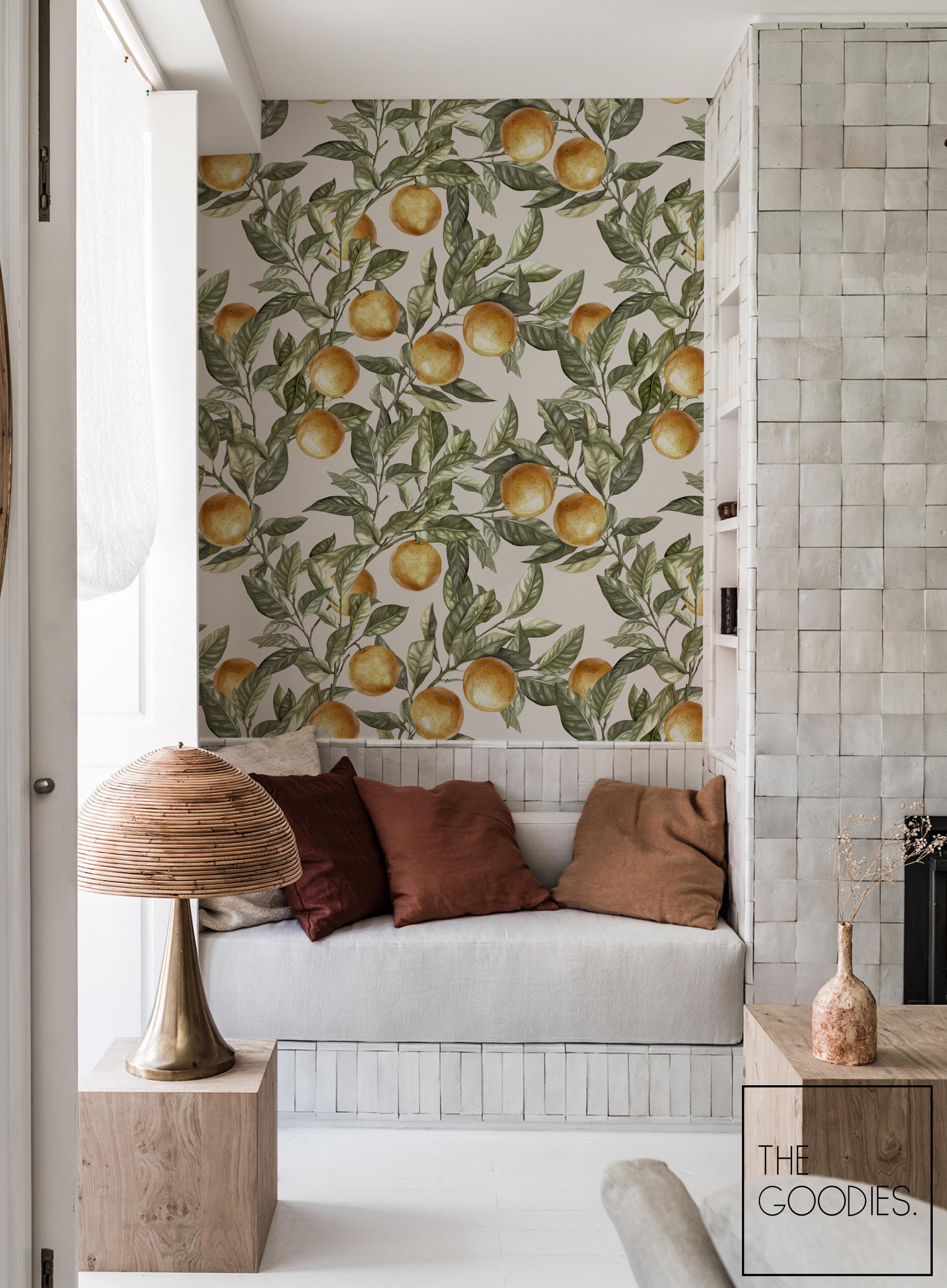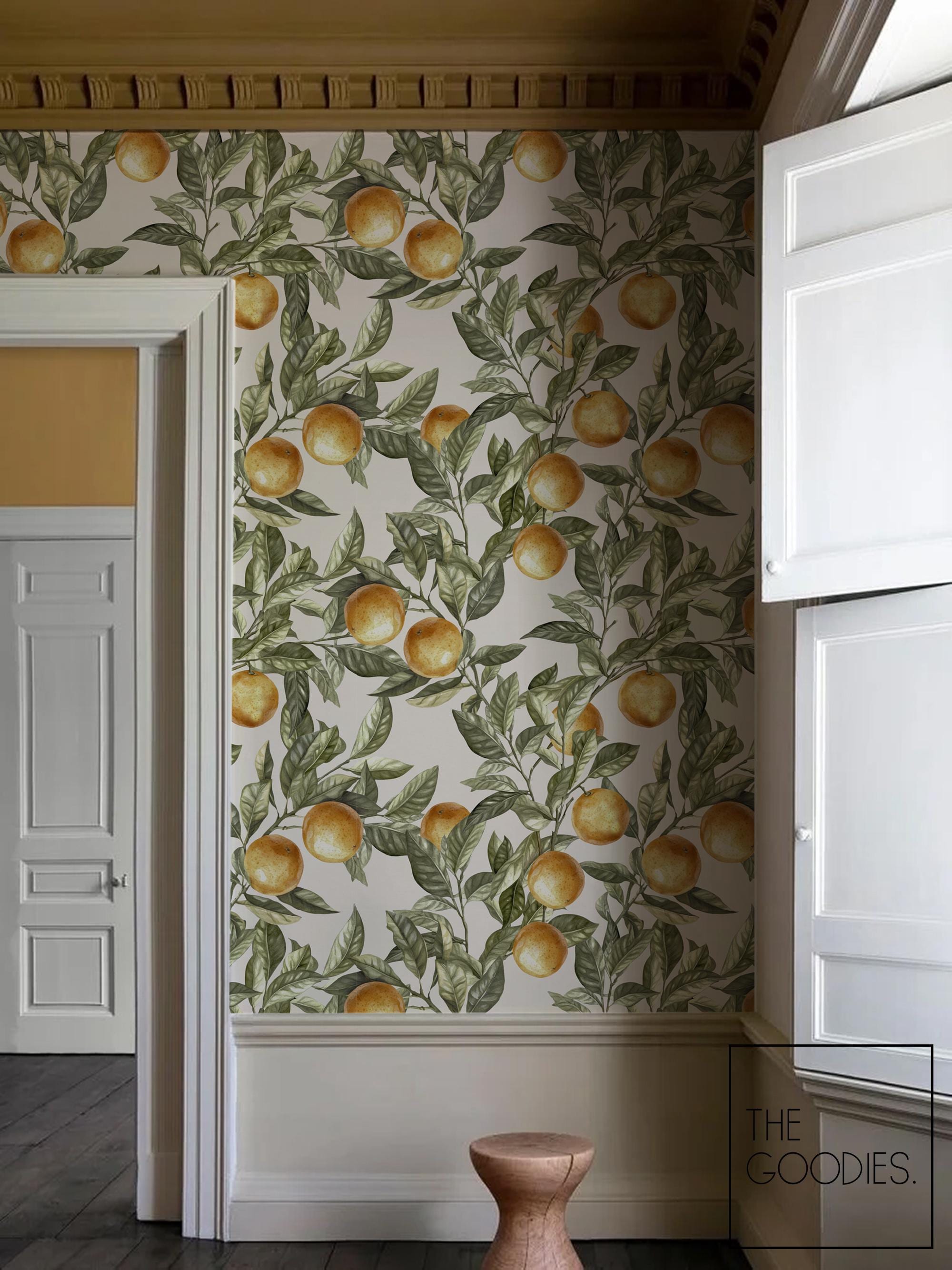 Peel and Stick Orange Wallpaper, Botanical Kitchen Wall Mural, Vintage Fruit Wallpaper for Dining Room #305